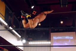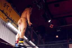 マイケルボディスラム、コーナーに上って「スプラッシュプランチャ!」(右写真)
