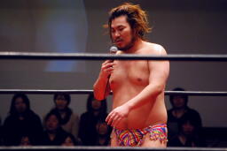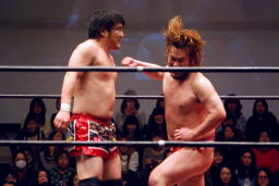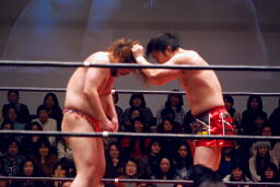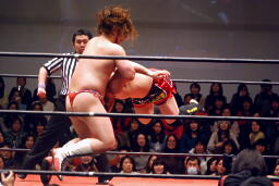 ディーノは「難しい・・・一人に絞れない」と高木と高梨を指名、両者が3/18新木場で挑戦者決定戦を行い、その勝者が4/1後楽園でディーノに挑戦。高梨「ディーノさん、アンタはいつもそうだ。デビューして9年、いつも俺の後押しをして、こういう場に引っ張りあげて。俺がそれに応えられたかどうかわからないけど。でも、もうそういう関係は終わらせなきゃいけない。どういう意味かわかるか?俺がお前を倒し、お前を超える!だからお前(高木)はすっこんでろ!4/1、男色ディーノの前に立つのはこの俺、マサ高梨だ!」 (左写真)