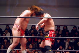 ディーノは足の力で佐藤をターンバックルに突っ込ませる(右写真)。