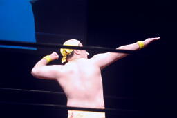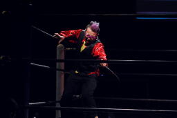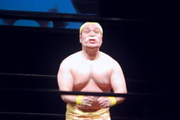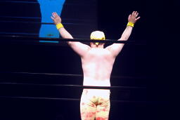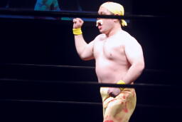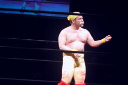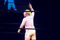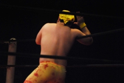 今成力也がリングに。わざわざモヒカンにしたのか!(右写真)
