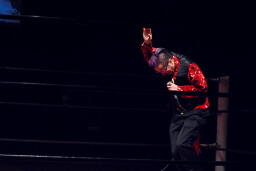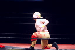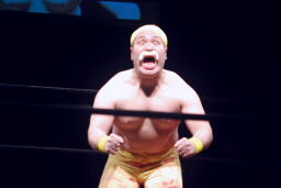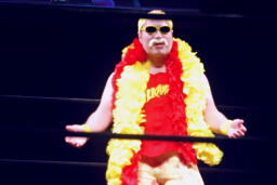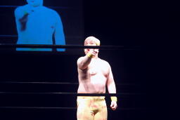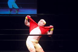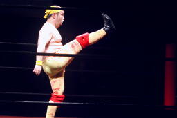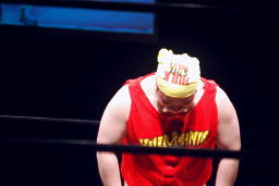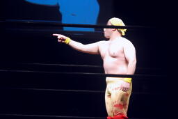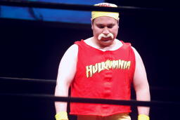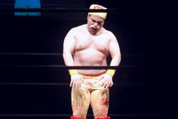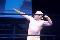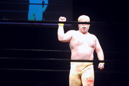 「リアル・アメリカン」に乗ってアントン扮するハルク・ホーガンがリングに(右写真)
