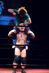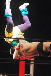 福田ロープに振ってココ☆ナツクラッシュ(右写真)、彰人にタッチ。
