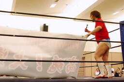 ディーノ「私が欲しかったのは選手も、レフェリーも、セコンドも、お客さんも、全員の気迫なのよ!横断幕なんて必要ないわ。」と置いて帰る。