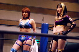 アイアンマン王者・華名が微妙な表情でリングイン(右写真)。