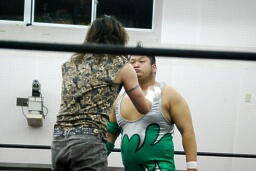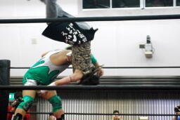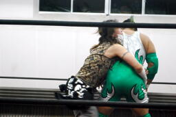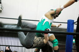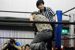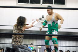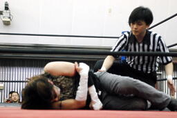 勝ち名乗りの後も起きないため、入江はリング下に入れられる。