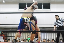 彰人足横須賀狙う、石井はDDTに切り返す(左写真)。
