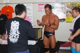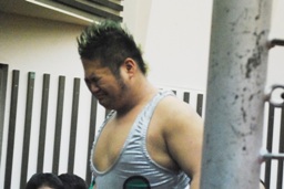 そして第2試合終了時からずっとリング下で寝てた入江も起こされて控室に(左写真)。