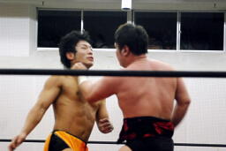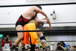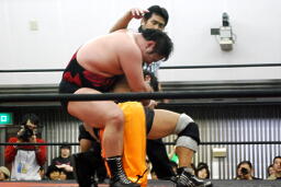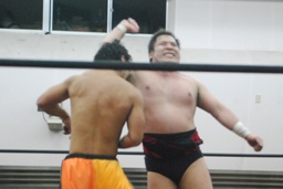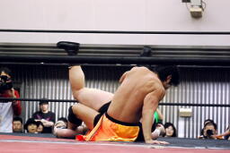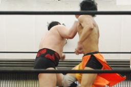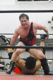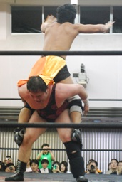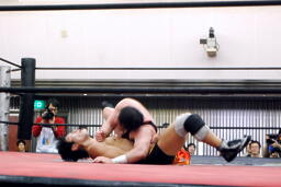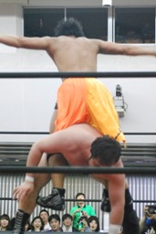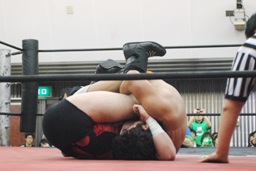 高梨十字架固めに切り返す(右写真)、カウント2。