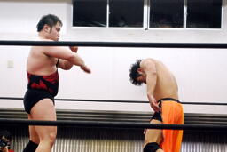 しかしアントンはコブラツイスト完成(右写真)、高梨ロープ。