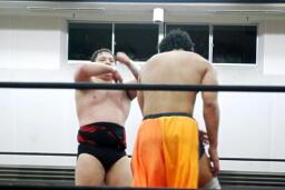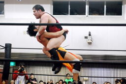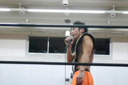 高梨「今日メインで闘ったアントーニオ本多って選手は、今Crying Wolfとして闘っているからだけじゃなく、知らない人も多いと思いますけど、自分にとって、何度も何年も国籍、シチュエーション、いろんなものを変えて、時には団体を変えて争ってきた相手です。そんなアントンとここ栃木でメインで闘って決着をつけたことを凄く嬉しく思います。だけど、アイツとの闘いは今日で終わったと思いません。これだけボコボコに殴られて、アイツへの怒り、尊敬で胸がいっぱいです。アイツとはこれからもずっと闘って行くと思いますので、できれば、皆さん、今日だけでなく、見続けていただけたら自分は嬉しいです。今日初めにチャンピオンとしてリングに上がった時も『GMの方がデカいじゃないか』と思ったかもしれません。でも、試合を見て、DDTのチャンピオンが誰なのかわかったという人がいたら嬉しいです。5月4日、火野選手に勝ったら、もっと自信を持ってここに帰って来れます。僕はもっともっと上を、もっともっと先を見据えて行きたいと思います。皆さんもついて来てください。今日はありがとうございました。」(左写真)