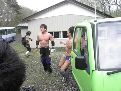 ばってんにタイツを脱がされかけてたらしい飯伏(左写真)。