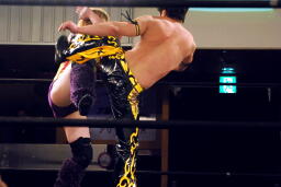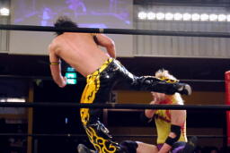 KUDOヒザ蹴り、矢野パンチ、KUDO対角線コーナーに振って8×4(右写真)、