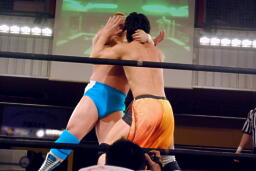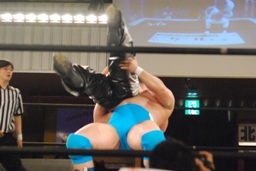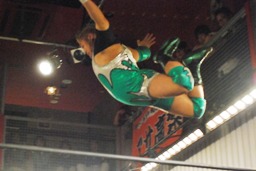 入江コーナーに上ってダイビングボディプレス(右写真)、高梨カット。