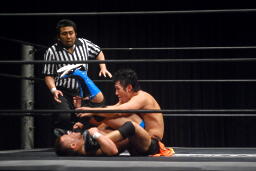 のしかかるようにエビ固め(右写真)、カウント3。