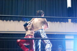高尾エルボー(右写真)、HARASHIMAヒザ蹴り。