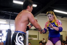 高梨が入って逆水平(右写真)佐野はチンクラッシャー、ニールキック。20分経過。