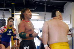 HARASHIMA「DDTは、激しく楽しく、お客さんに満足して帰ってもらう興行目指してやってるよ。プロレスにはいろんなスタイルがあるから、好きなようにやっていいと思うよ。今日初めてケルベロス道場で試合させてもらって、一つわかったことがある。プロレスにはいろんな形があるんだなってわかって、面白かったと思う。矢野くん、ありがとう。」両者握手。