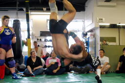 バック取るが膠着(左写真)。HARASHIMAリリース。15分経過。