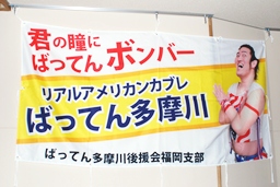 会場に張ってあったばってん応援横断幕(右写真)。素晴らしい。