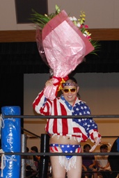 そしてゴッチ式男色ドライバー。四方に見せ付けて落とす(左写真)。漢固めでカウント3。