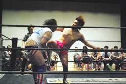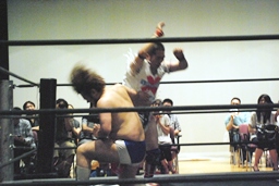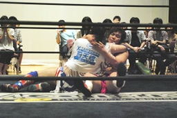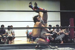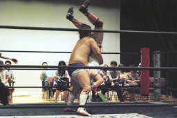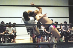 ディーノスイちん、男色スープレックス連発(右写真)