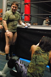 アントンが「ベトナムはこんなもんじゃなかっただろう!」と佐々木一等兵を叱咤(右写真)。ベトナム帰りなのか?>モンスターアーミー。ウラノ腕を固めて佐々木にタッチ。