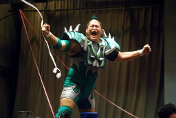 大石が動かないため騒然としたムードになったが、無事を確認したKUDOが一人で怪盗踊って雰囲気変える。大石は担架で退場。