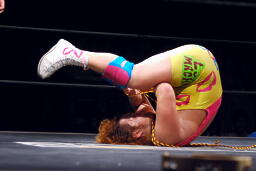 ブリッジで固めるが(右写真)宮原は2で返す。