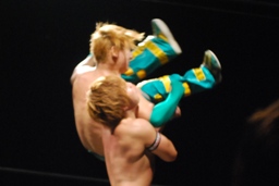 佐々木と千賀ロープワーク、千賀フライングメイヤー(右写真)、佐々木ヘッドシザーズ。千賀再度フライングメイヤー、佐々木ヘッドシザーズ。