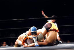 大石ヨーロピアンクラッチ(左写真)、カウント3。