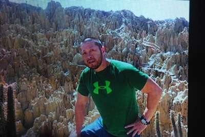 休憩明け、ボリビアの「月の谷」からディック東郷のビデオレターが上映(右写真)。