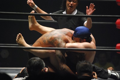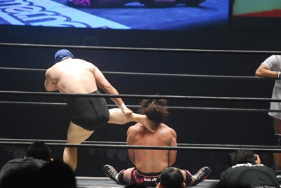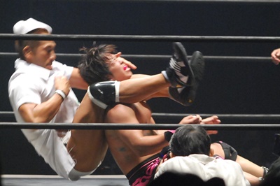 高尾ドロップキック、シュバイン(左写真)、カウント2。