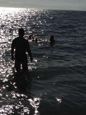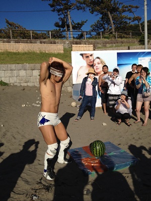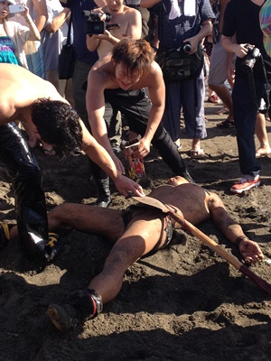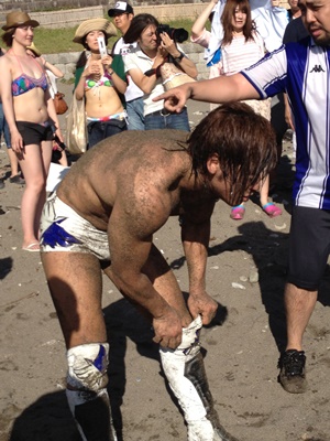 試合終了、海で闘っていた福田と高木も上がってくる(右写真)。