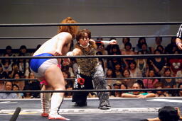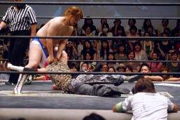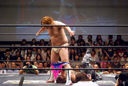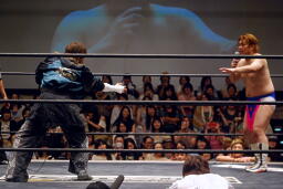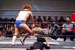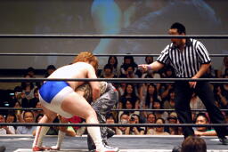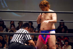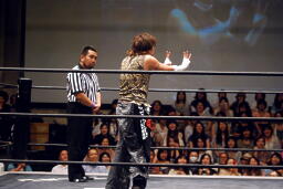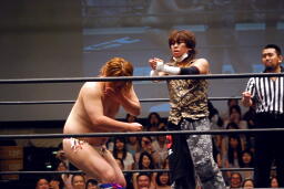 ディーノ「このレフェリーのボディチェック、妙に艶めかしい。もしかしてこのレフェリーもこっちの人間?いや、これは私の心を揺さぶった隙にロケットパンチを放つに違いない。だったら、レフェリーチェックは受けない!」突き飛ばす。