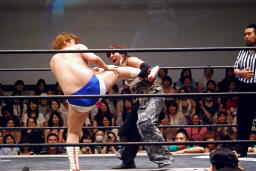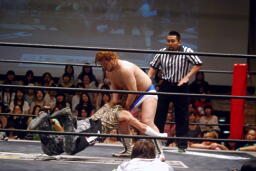 レインメーカー式ロケットパンチ(右写真)、カウント2。5分経過。