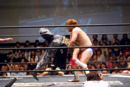 ニラコーナーに上ってダイビングロケットパンチ(左写真)、