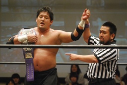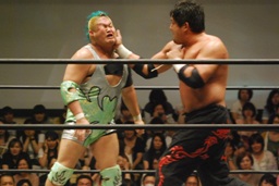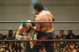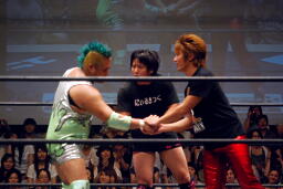そして石井、入江、高尾による新ユニット始動(左写真)。名前はどうでもいいんだけれど、とりあえず発表では超世代決起軍(仮)という期待していいんだかどうなんだか、な名前になっていた。三本の矢はまとまって上を貫くことができるかな?