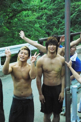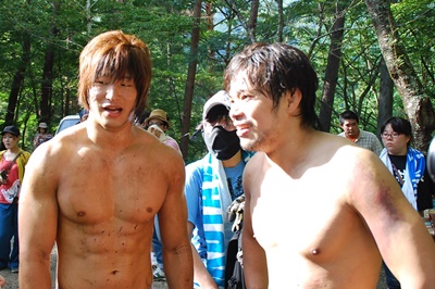 水から上がった飯伏(右写真)。