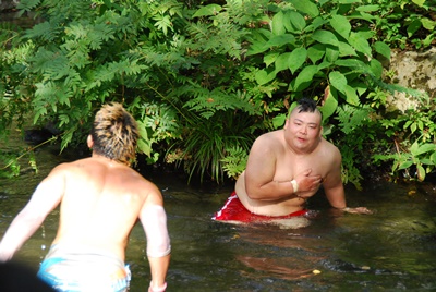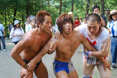かと思うと突如始まるレスリング(左写真)。