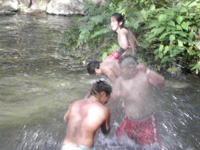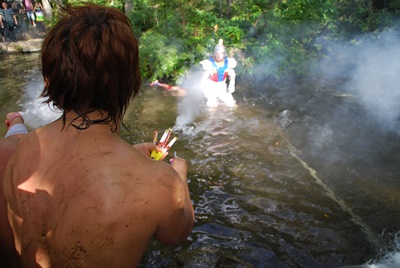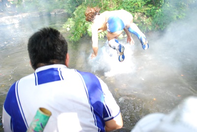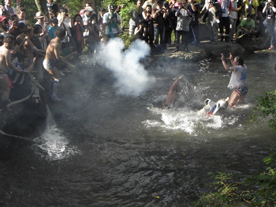 水の掛け合い(左写真)。