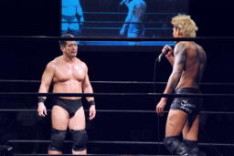 高木「坂口さんは訳がわからないかもしれない。古くからDDT観戦してる人たちはなんとなくわかるんですけど、これが宿命なんですよ!」(左写真)
