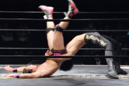 石井は高梨を入江にぶつけてダウンさせると石井サマーソルトドロップ(右写真)、
