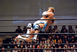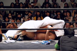 松井ヘッドロックからフライングメイヤー(左写真)GMヘッドシザーズ、松井ブレーク。