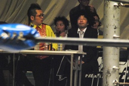 GMがなぜか尻を押さえながら本部席に戻ってくる(左写真)。