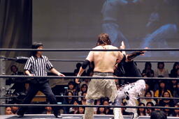 MIKAMIをリングに戻してダブルのチョップ(右写真)、