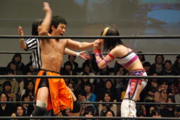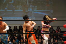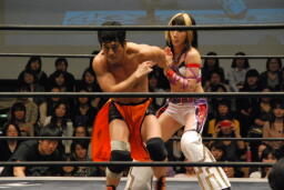 第1試合 大石真翔(総選挙第9位)&紫雷美央(総選挙第11位)vs マサ高梨(総選挙第12位)&チェリー(総選挙第15位)