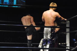 ポイズン「MIKAMI、やったな。俺はお前が勝つって信じてた。絶対勝つって信じてた。節目節目で闘ってきた俺だからわかってたさ。MIKAMI、いや恭平ちゃんでいいよな。約束してくれ。11月25日、恭平ちゃんがベルトを巻く姿を見せてくれ。その姿を見て俺は引退するよ。」(右写真)