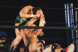 石井ガットショット、ヘッドロック(右写真)。