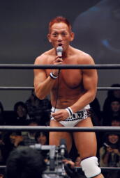 ニラ必死に抵抗するが来年1発目の後楽園で藤原喜明に挑戦することになりそう(右写真)。
