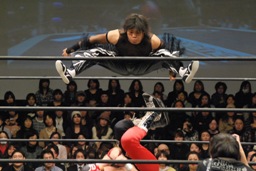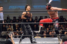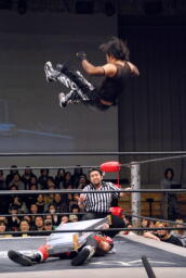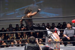 ゼロ戦キック(右写真)、カウント2。MIKAMI場外に。